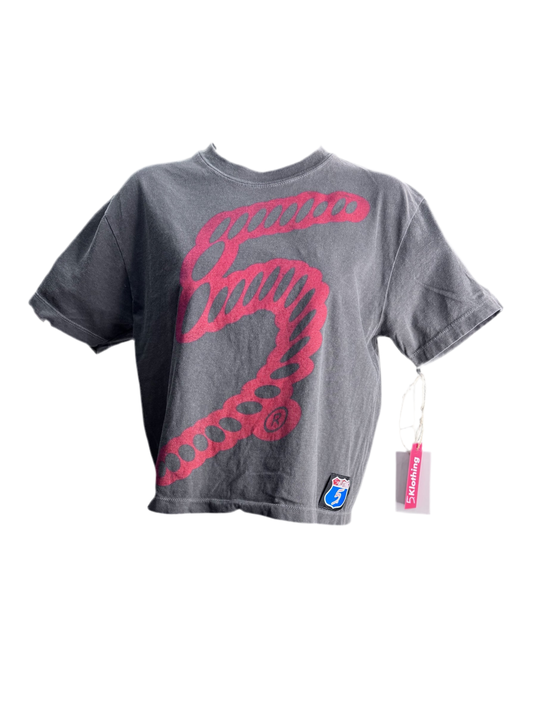 100% Cotton 5 Racing cropped/boxy fit T-shirt with distressed Big 5 print on the front.